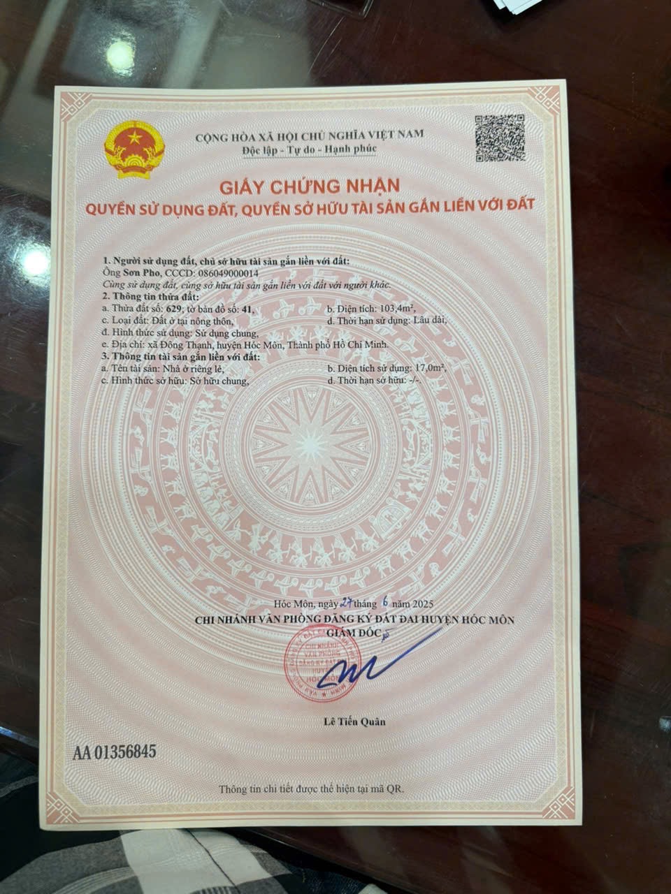 ❤️❤️❤️ Thân gửi ace hợp tác bán lô đất đường thông sau lưng chợ Đông Thạnh Hóc Môn
